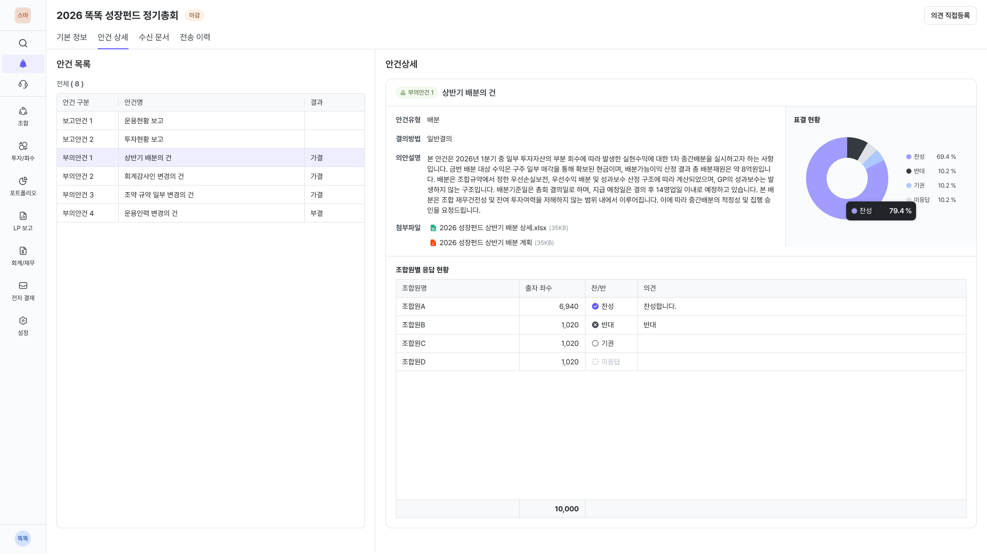 또한 필요 시 운용사가 조합원의 의견을 직접 등록 할 수 있습니다.
