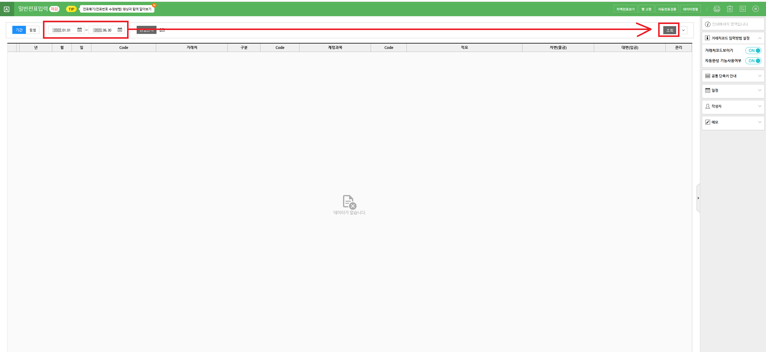 3. 조회할 기간을 설정 하신 후, 우측의 ‘조회’버튼 클릭합니다.