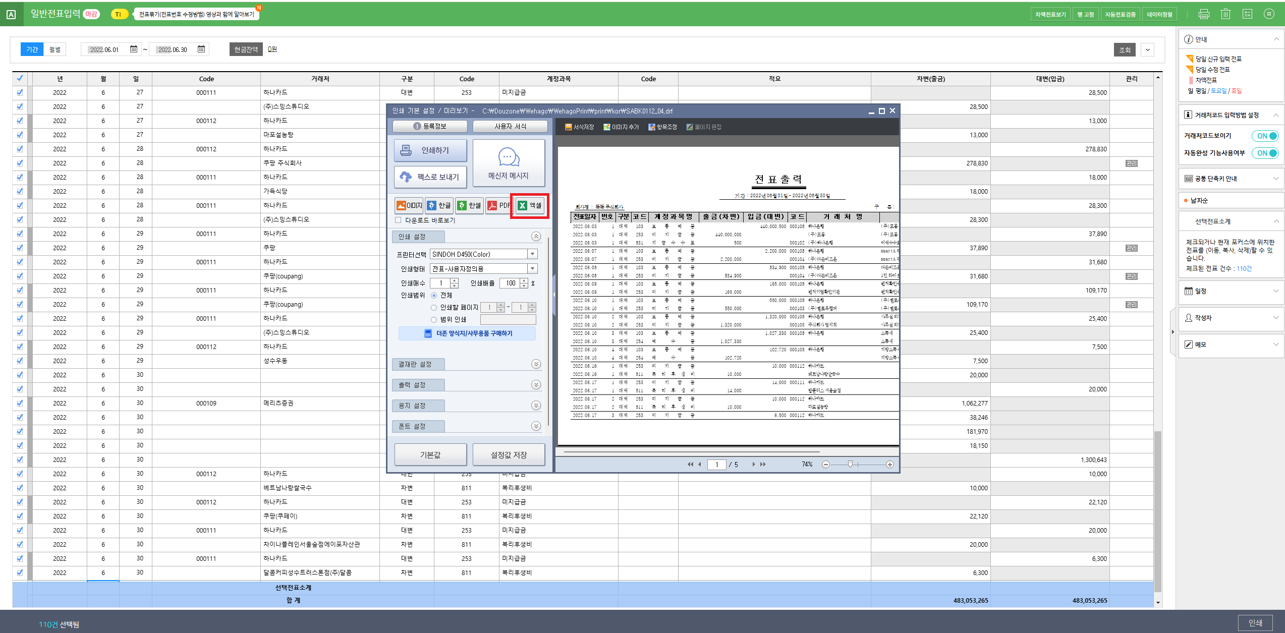 4. 엑셀 버튼을 클릭 하여, 인쇄 합니다.
