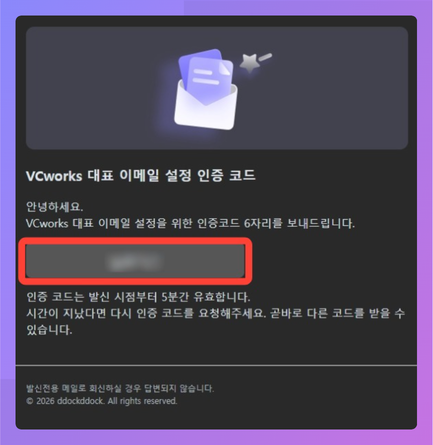 - 대표 이메일은 똑똑 주식회사가 VCworks 이용 고객사에 주요 공지 사항(서비스 이용 약관·정책 변경 등)을 발송하는 채널이므로 실제 수신 가능한 주소를 등록해주세요.